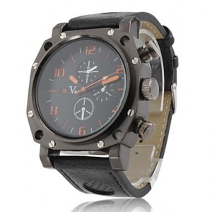 Montre Sportive pour Homme à Quartz Gladiator, Bracelet en cuir PU Noir