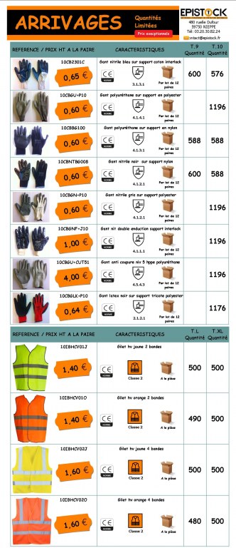 Veuillez trouver notre opération « Arrivages » sur les gants et les gilets de signalisations,