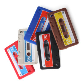 Etui en Silicone Style Cassette pour iPhone 4 - Bleu, noir