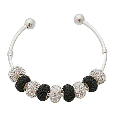 Bracelet en argent plaqué manchette en métal avec 9 perles de cristal (noir et blanc)