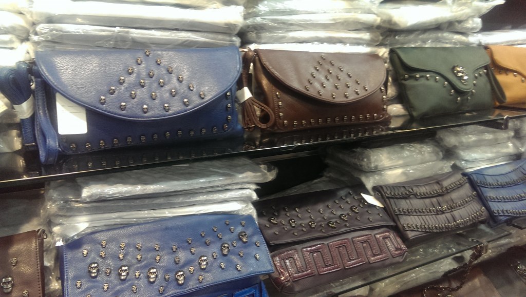 Une dizaine de modèles de sacs à main avec déclinaisons de couleurs conditionnés sous film à l'unité.