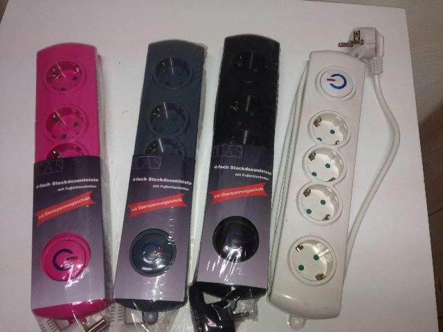 Multiprises 4 ports avec interrupteur et normalisées CE - 4 couleurs disponibles