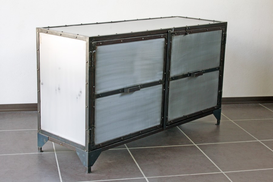 L'alliance de sa structure en acier brut rivetée, et du métal brut pour les portes et le plateau lui confère un style authentique qui fera merveille dans un salon contemporain.