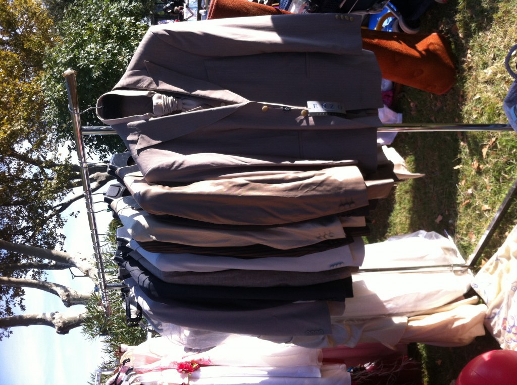 5 robes de mariées. - 13 robes enfants - 4 costumes garçons - 8 chemises garçons - 10 costumes homme - 2 pantalons - 7 gilets - 17 cravates - 3 robes coktail grand soir - 7 robes de soirées - 4 debardeurs soirées - 4 voiles court et un long borde de dentelle - 6 peignes cheveux mariées - 13 chemises hommes - 4 paire de chaussures 37 mariées