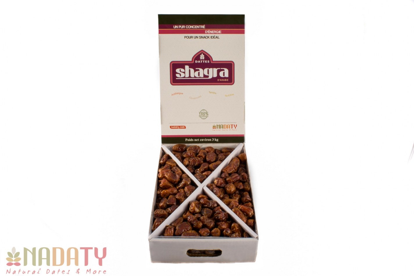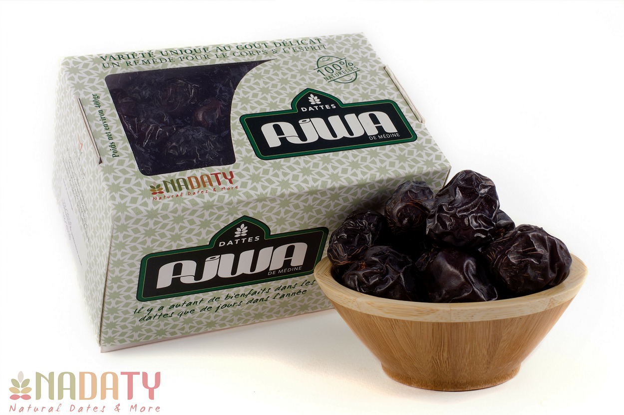 Nous vous proposons aussi des Ajwa de Médine, des Khudri et des Shagra d'Arabie,de toute premiere qualité en boite de 800 GR, en colis de 3 KG et en vrac 10 KG