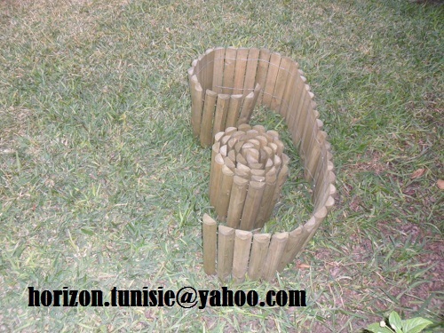 Bordure de gazon en bois sapin en rouleau de 2 ml de longueur et 20,30 et 40 cm de hauteur le prix unitaire depart usine sfax tunisie sur des palettes de 1M/2M Hauteur 1 M Quantité par palette 100 pieces