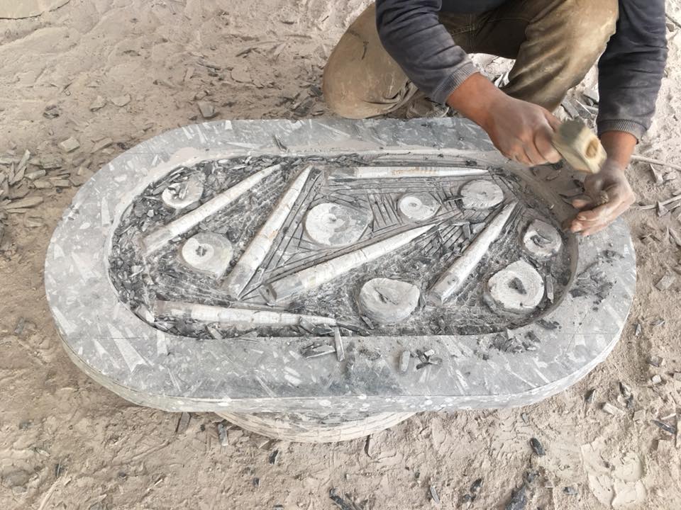 Tables en marbre riche en fossiles datant de plus de 350 millions d'années à commander sur mesure