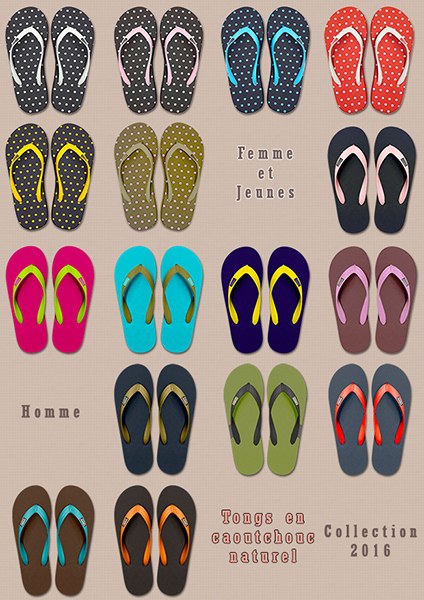 Très belle collection de tongs 16 modèles pour magasins. Fabriquées à partir de caoutchouc 100 % naturel, produit de haute qualité, souple, résistantes, et surtout très confortable, convenant à toute zone touristique ainsi que boutiques de produit naturel & commerce équitable. Ces tongs élégantes se portent aussi bien à la plage, en ville que dans une soirée. Femmes/hommes/jeunes. 6 paires et 4 tailles pour chaque modèle: Femmes/jeunes: (1 x 36-37, 2 x 37-38, 2 x 39-40, 1 x 40-41); Hommes: (1 x 40-41, 2 x 42-43, 2 x 43-44, 1 x 45-46). Total de la collection: 6 paires x 16 modèles = 96 paires. Neuves, emballés sous sachet, cintres. 2 cartons de 48 paires composent la collection complète. La marque hippobloo est présente en Europe et connait une ascension mondiale. Elle est destinée à tout le monde, en particulier à ceux et celles qui aiment ses associations de couleurs, sa forme classy, son confort incomparable, ses engagements équitable.