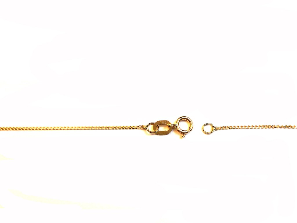 Magnifique Chaîne or jaune massif 18 carats. Mailles gourmette diamantée. Largeur 0,8 mm Longueur 40 cm Poids: 0.85 grammes. BIJOUX NEUF. Quantité en stock 20 pcs. Vente au détail. 50 euros pièce la chaîne.