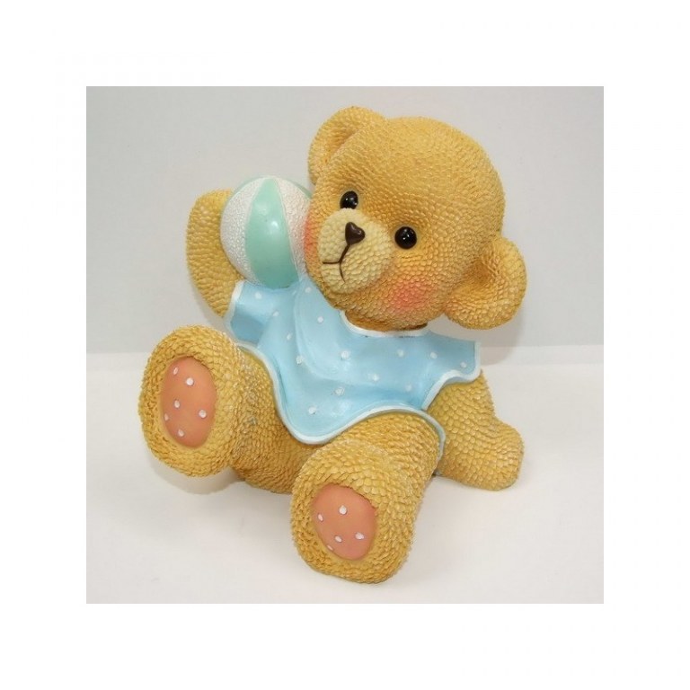 Tirelire oursons fille et Garçon en résine avec bouchon sur le dessous et ouverture au dos.