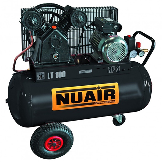 Compresseur à piston NUAIR. Compresseur à entrainement par courroie. Très performant avec tête de compression bi-cylindre en "V"