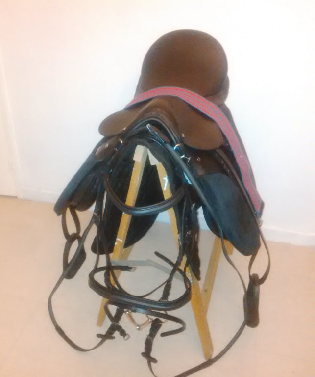 15 filets avec rênes , 15 selles cuir mixte , 17 mors simple , 17 tapis de selles , étriers , étrivières et sangles.