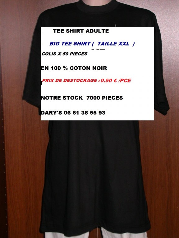 UN LOT DE 7000 BIG TEE SHIRT RC ( TAILLE UNIQUE XXL ) EN 100 % COTON NOIR