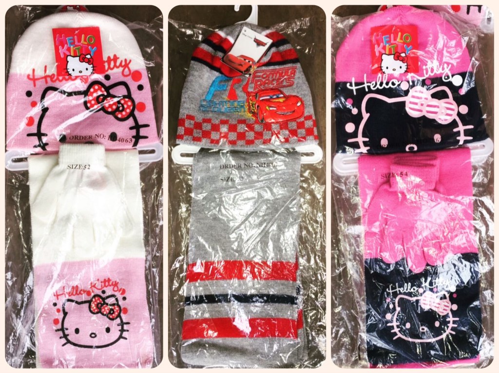 Lot d'ensemble gant+écharpe+bonnet hello kitty et cars