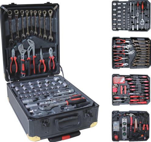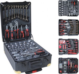Boîte à outils à 256 pièces composée de malettes en aluminium, fermables à clé avec et poignées amovibles.