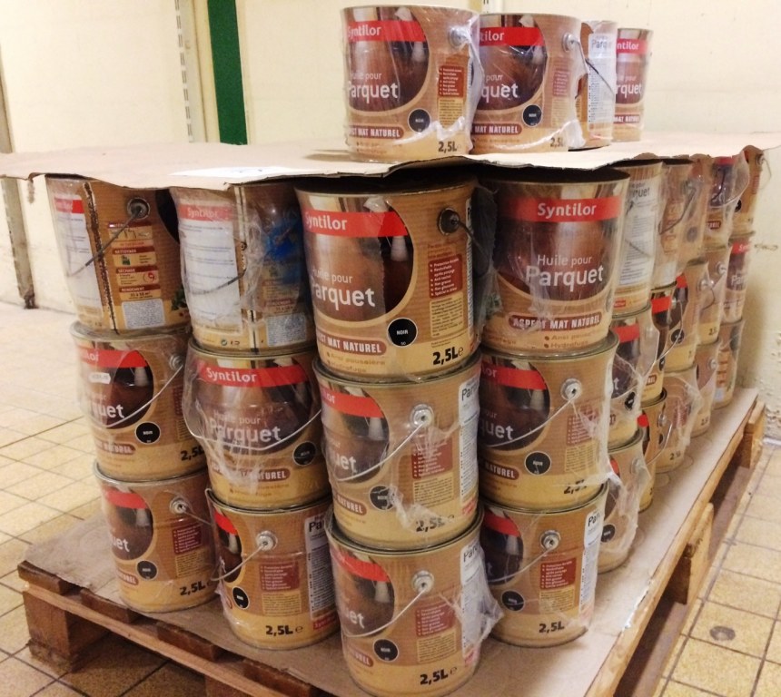 Vendu en 1 seul lot de 89 pots de 2.5L soit 222.5L.