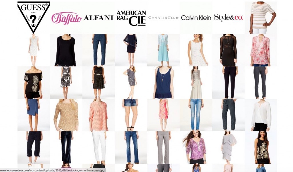 Mix de grandes marques américaines exclusives et grandes marques internationales telles que Guess, Calvin Klein ou encore American Rag. Produits étiquetés.