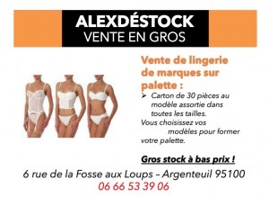 Vous pouvez voir la marchandise avant de l'acheter. AlexDéstock Entrepôt de Déstockage 6 rue de la Fosse aux Loups 95100 ARGENTEUIL