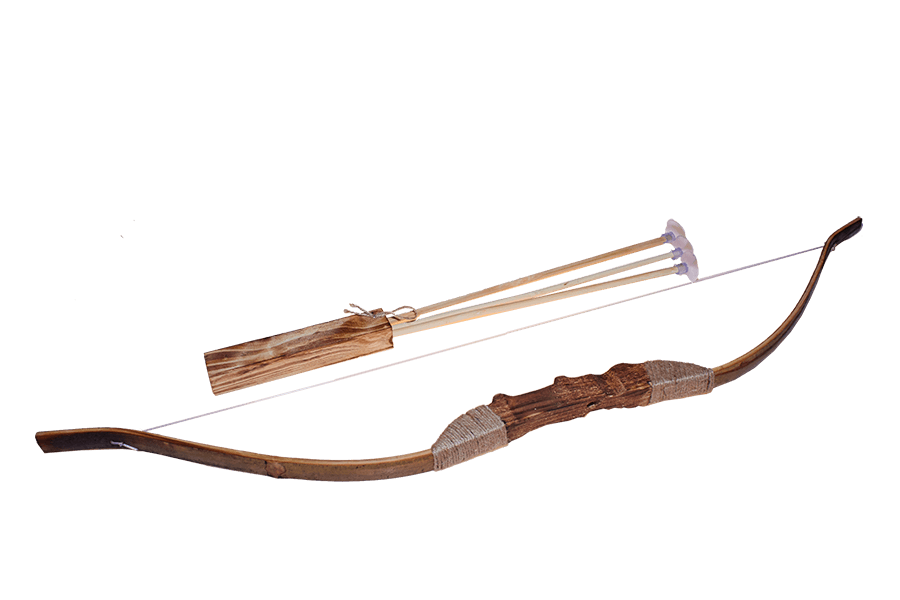 Arc en bois 90cm. Chaque arc est fourni avec 3 flêches ou 3 pointes (au choix) ainsi qu'un carquois en bois également. Jouets de qualité. Flèches ou pointes en bois d'une longueur de 30cm Quantité: 100 Tarif: 5,10HT