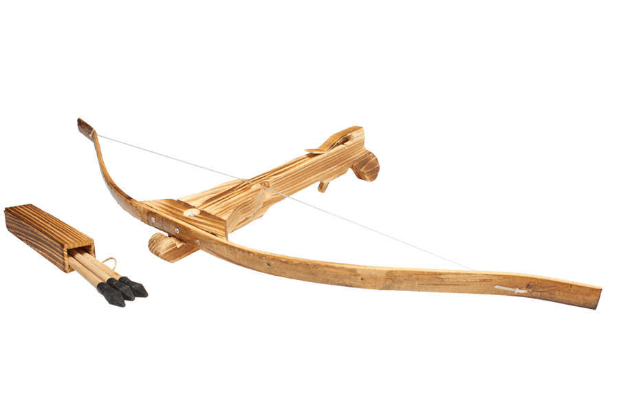 Vente exclusivement aux professionnels Arbalète en bois 75cm. Chaque arbalète est fournie avec 3 flêches ou 3 pointes (au choix) ainsi qu'un carquois en bois également. Jouets de qualité. Flèches ou pointes en bois d'une longueur de 30cm Quantité: 48 Tarif: 5,15HT