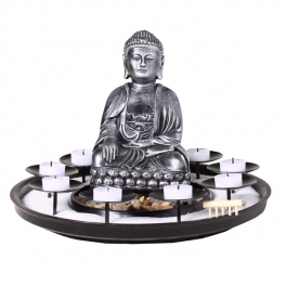 Statuette bouddha zen avec plateau - photophore 9 bougies