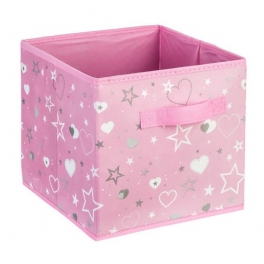 Bac de rangement rose imprimé étoile, 24 x 24 x 23 cm.