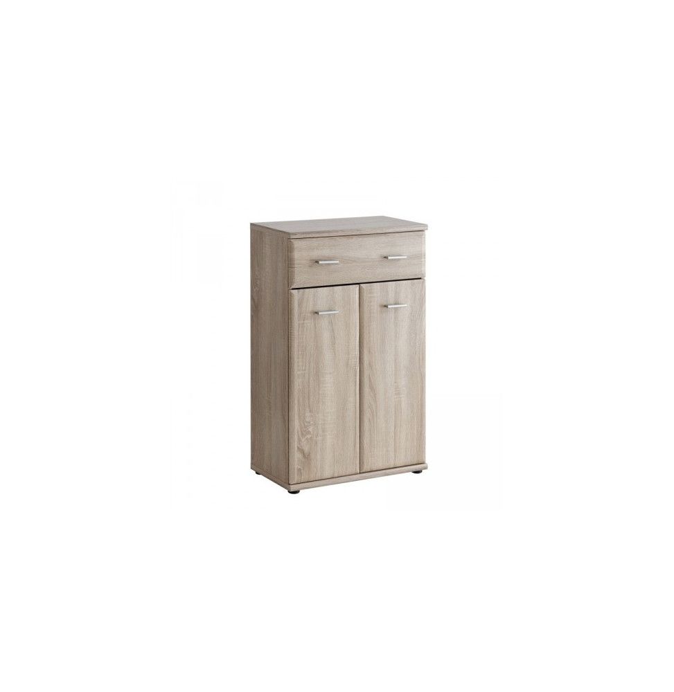 Armoire de rangement avec un tiroir et deux portes derrière lesquelles il y a deux étagères de rangement. Facile à monter soi-même.