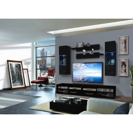 Il se compose de deux tiroirs sur le front commun et de deux niches ouvertes. Les poignées de longueur de 25 cm. Deux bancs TV sont inclus. Vitrine à suspendre fermée : à l'intérieur il y a deux tablettes .Montage de charnières