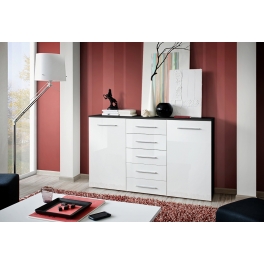 Commode murale à poser avec deux portes. Elle est composée à lÂintérieur de chaque porte de deux étagères de rangement. Entre les portes il y a 5 tiroirs. Existe en plusieurs couleurs. A poser partout. Facile à monter.</
