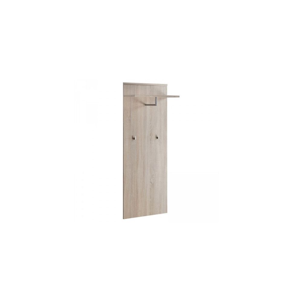 Panneau vestiaire avec une tablette fixe au-dessous de laquelle se trouve une barre de suspension et deux crochets isolés. Facile à monter soi-même. A poser partout.