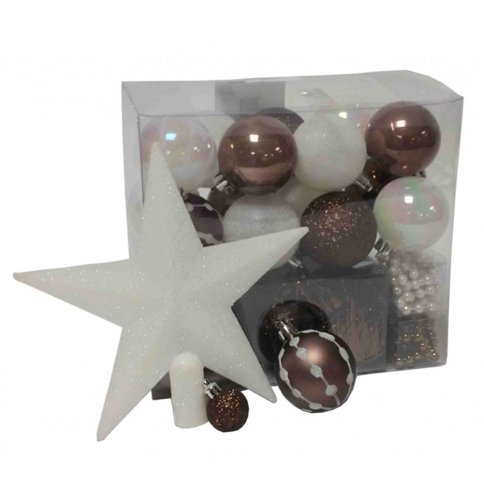 Kit de 44 décorations pour sapin - taupe et blanc - guirlandes, boule
