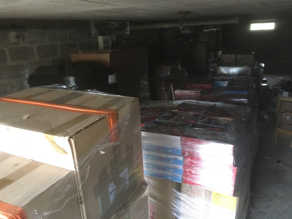 Cède lot solderie et Noël, environ 3500 pièces composé de jouets et de papier cadeau cars, reine des neiges et nombreux produits d'entretien shampoing, lave main, piles ...