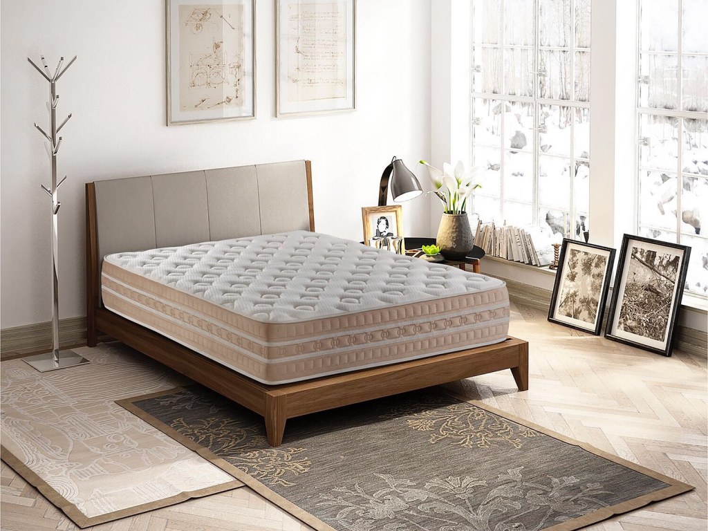 Coutil cachemire 320 grammes. Matelassage Plateau piqué. Matelassage avec 1,5 cm de mousse mémoire de forme.