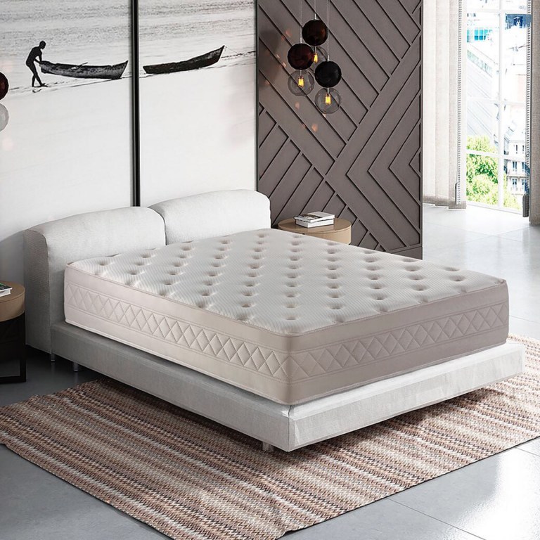 Coutil stretch 340 grammes. Matelassage Plateau piqué. Matelassage avec 2,5 cm de mousse mémoire de forme.