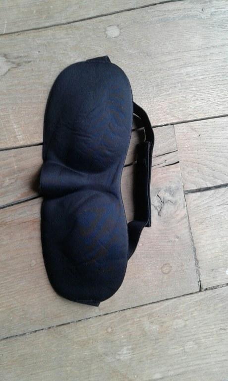 cache yeux matière douce avec espace pour le nez et fermeture ajustable. 7 euros si commande de + de 100 unités