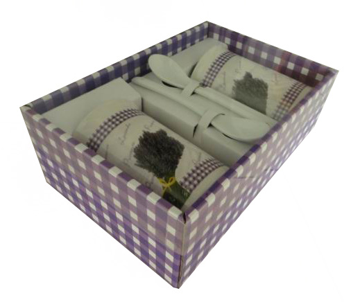 Deux mugs+cuillËres motif lavande dans un coffret.