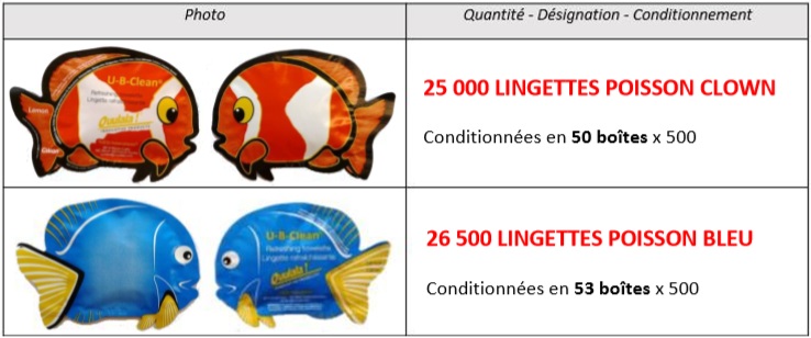 A SAISIR - LOT de 51500 lingettes poisson rigolo
