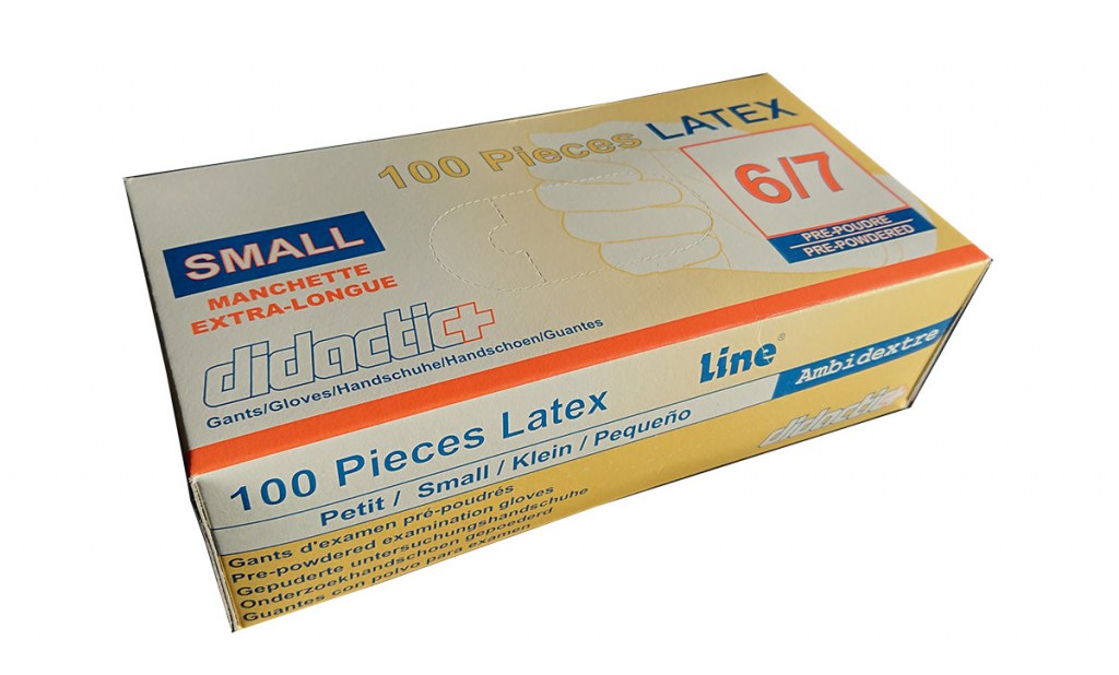 Lot de gants latex pré-poudrés en boite de 100 gants