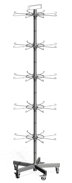 Présentoir métallique tournant à roulettes hauteur 1m80 diamètre 0.50 cm.
