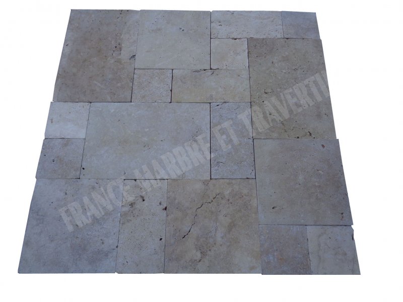 Travertin Classique Beige Opus Romain Dimension : 20x20 - 20x40 - 40x40 - 40x60 cm Épaisseur : 1,2 cm Finition : Antique & Vieilli Qualité : Rustique Prix : à partir de 15 € HT - m² De 1 m² à 250 m² : 17 € HT - m²
