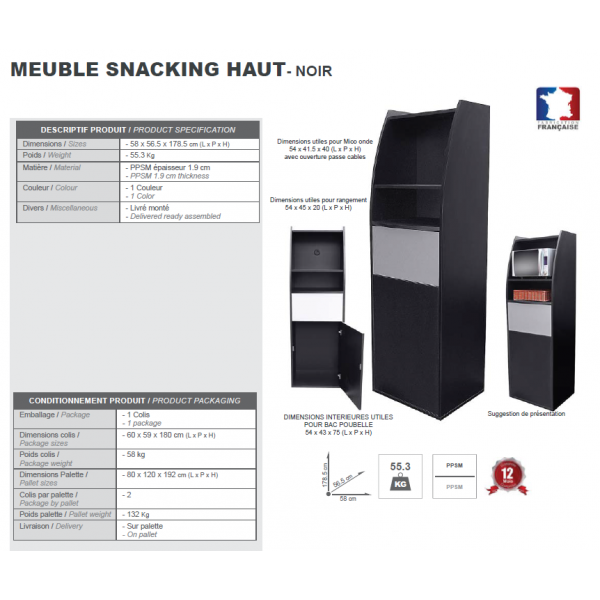Meuble poubelle haut spécial fast food, avec trappe aluminium, espace de rangement et emplacement micro-ondes