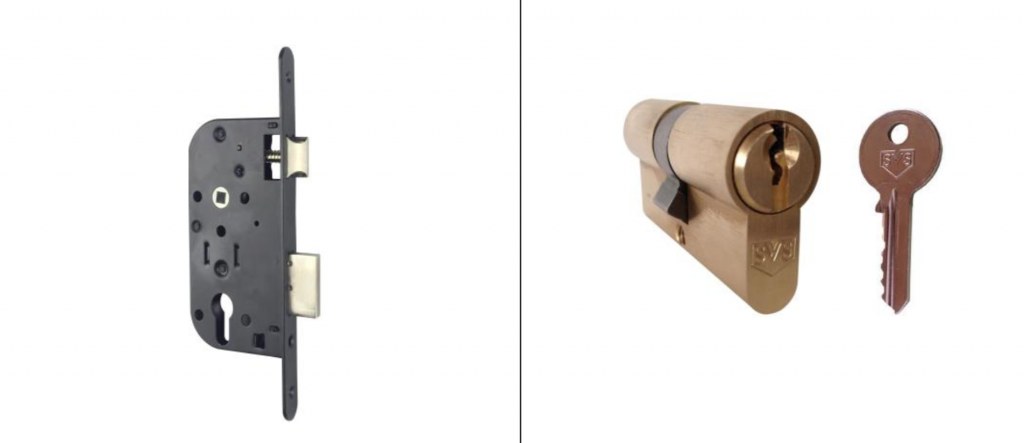 - Pêne dormant et 1⁄2 tour réversible, à cylindre, 2 tours, Coffre de 14 mm, Entraxe 70 mm, Axe 40