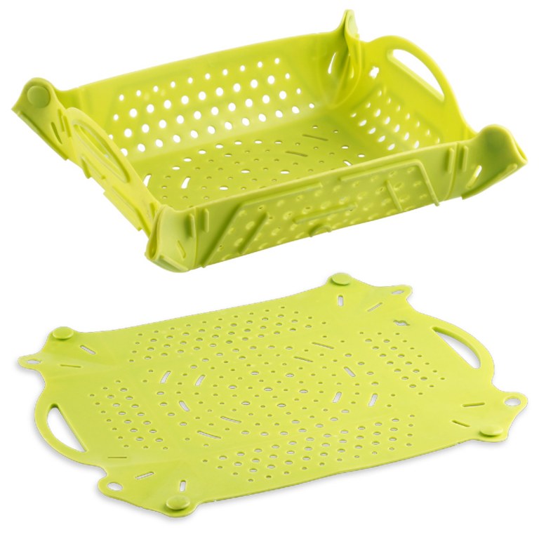 - Passoire : Grâce à son système de clips, il se plie facilement afin de nettoyer les fruits, salades, légumes ou même essorer les pâtes ou riz.