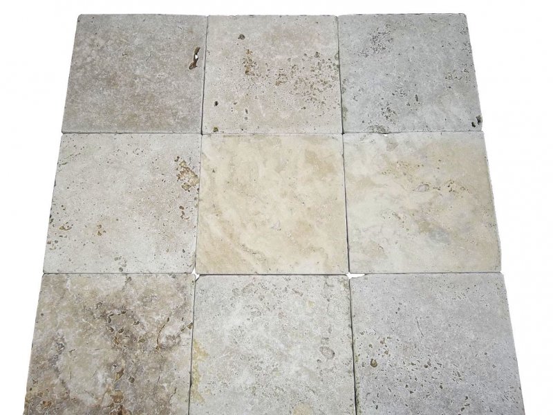 Travertin Classique Beige 30x30 cm (référence 012) Épaisseur : 1,5 cm Finition : Antique & Vieilli Qualité : Commercial PRIX : 26 € HT - m²