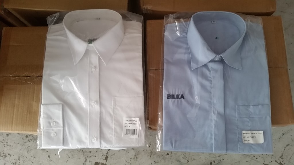 Vends très belle chemises de qualité supérieur. De couleur Blanches : manches longues / manches courtes 60% coton et 40% polyester et de couleur Bleues manches longues / manches courtes 70% coton et 30% polyester. les tailles vont du 36 AU 58. Très larges choix au niveau des tailles. Les cartons sont conditionnés par 6 pcs. Possibilité à la palette 2.30€ / La chemise.