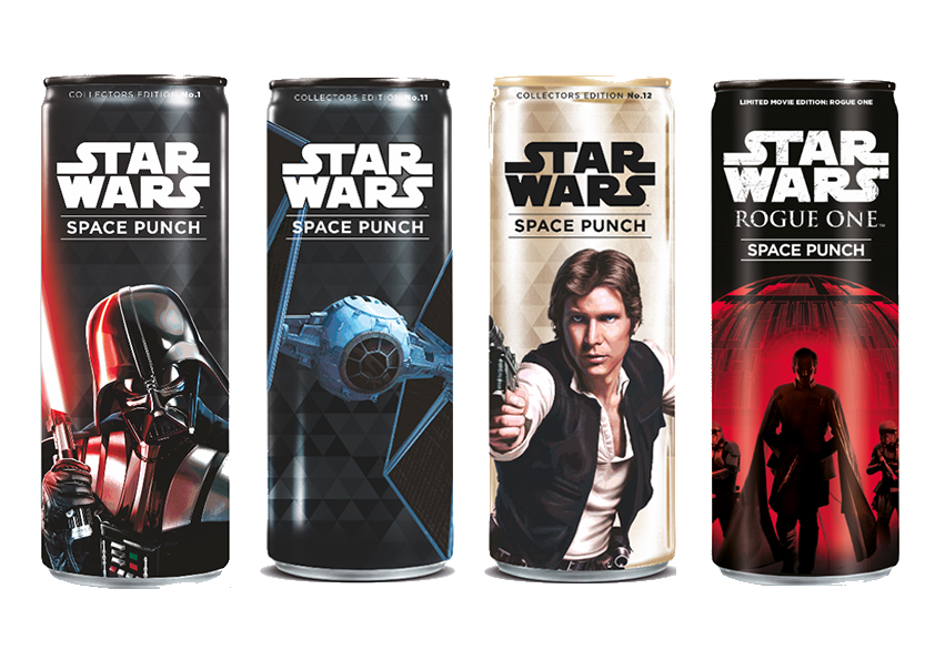 - Boisson aux fruits (10%) Légèrement gazeuse Sans caféine / Sans sucres ajoutés / Sans arômes artificiels / 20 kcal par canette Canette de 355ml A boire frais Impression HD haute qualité Pas de co-branding = Produits 100% Star Wars