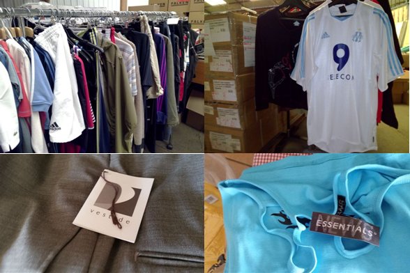 Essential, vestide.. on y trouve pantalons, chemises, pull, vestes,tee shirts, sous-vêtement… soit un total 700 à 1000 pièces. Valeur étiquetage du lot 31 000 euros