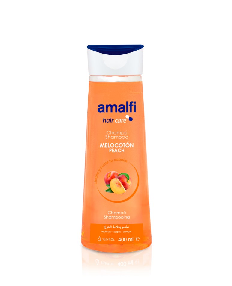 Shampoing Amalfi 400ml , nous avons les parfums Peche, Fraise, Pomme, Miel, Aloe Vera et Amande