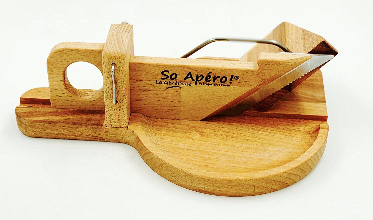 Nous avons une palette de guillotine à saucisson SO'APERO à déstocker. Modèle exclusif avec un plateau de service intégré. Idéal à quelques mois des fêtes de fin d'année. Emballage très haut de gamme qui met en valeur la guillotine. Disponibilité immédiate.