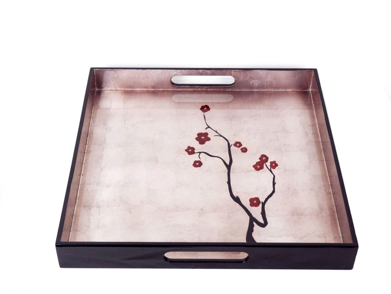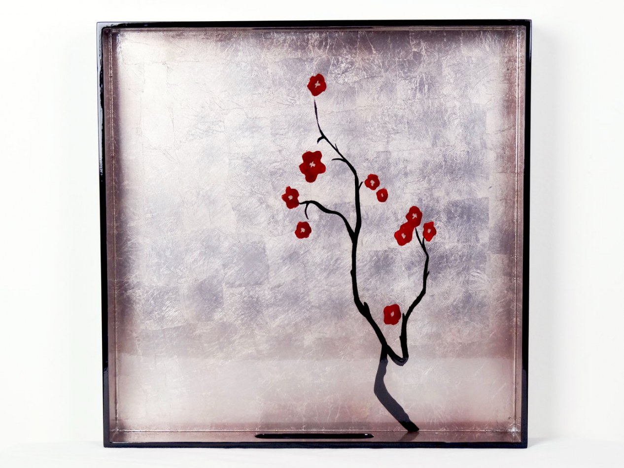 Magnifique plateau peint et lacqué 40x40x5 cm